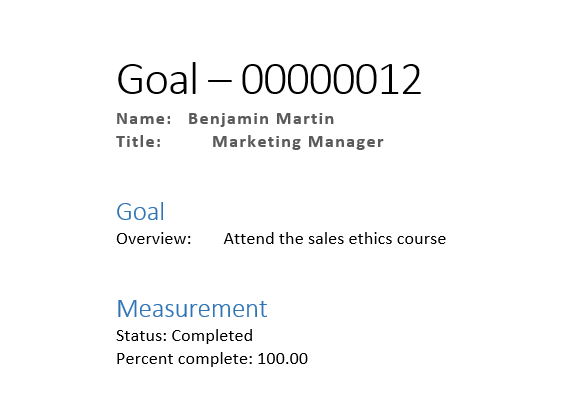 Lets say, you want to generate the performance goal document, go to goals form under Employment development module. Open any goal record and click on Office button on top right hand side in order to generate the document.