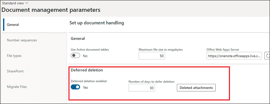 Remember that by default you can restore only the file that is deleted in 30 days. The cap can be increased in document management parameters as shown below.