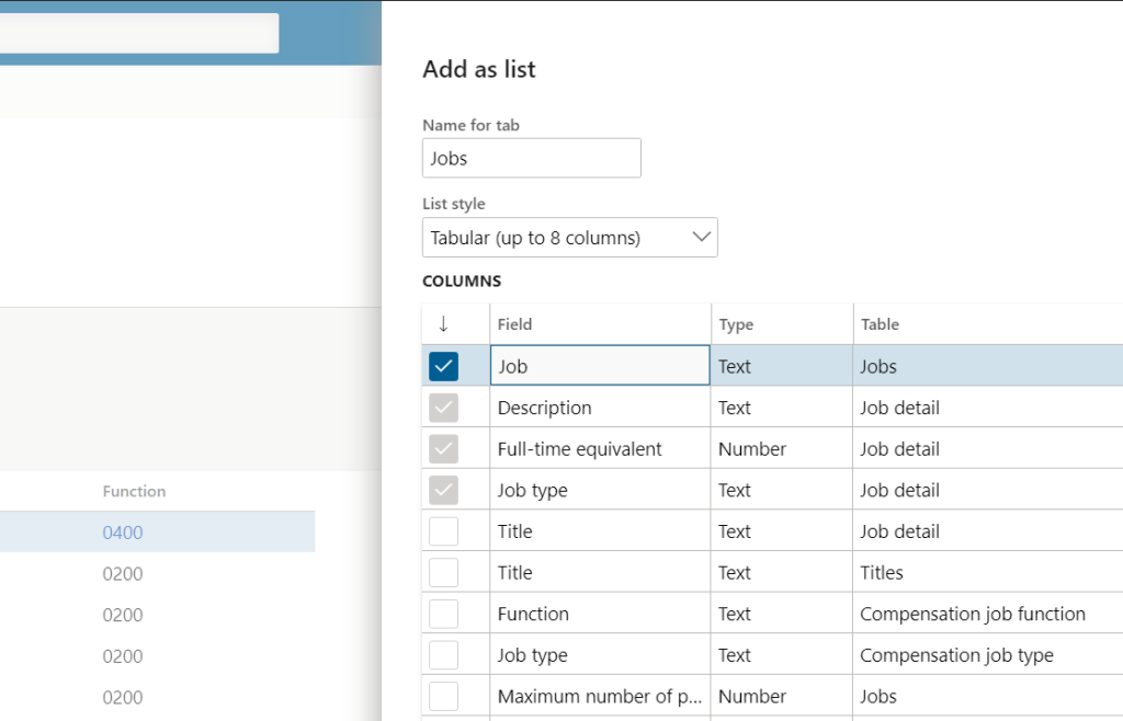 Click on configure once you select list as shown above. Then you will be asked to provide the name of the list page and which columns you want to see (max 8 can be selected) in the workspace. Click on Ok once done.