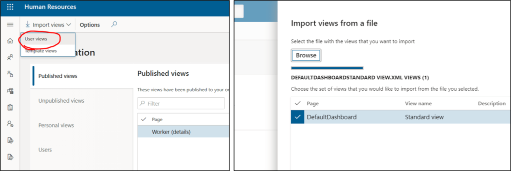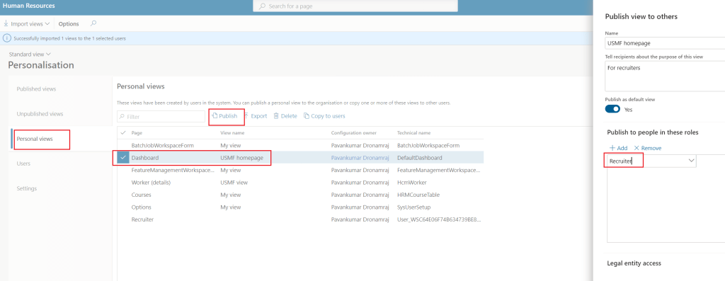 Click on resolve and you will see the imported view under saved views. Now you can publish this view to the security role as shown below.