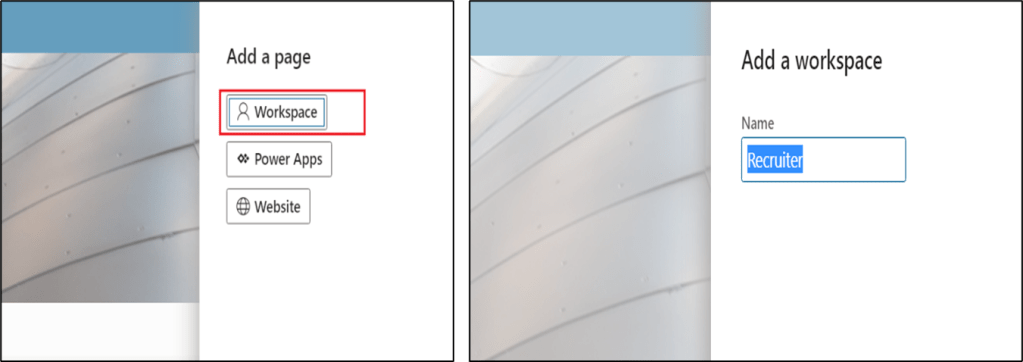 - Add PowerApps (I will cover in my coming articles on how to create a simple powerapp and can add in workspace or personalize in any page)