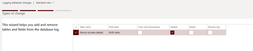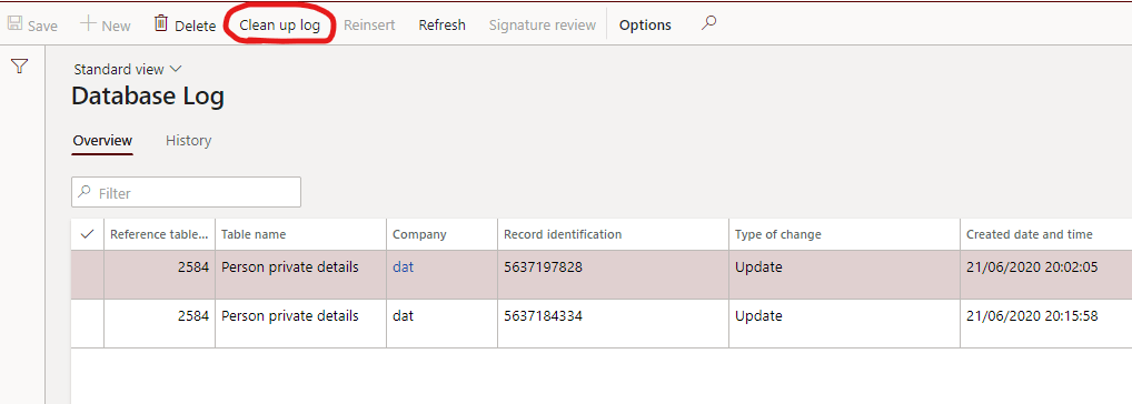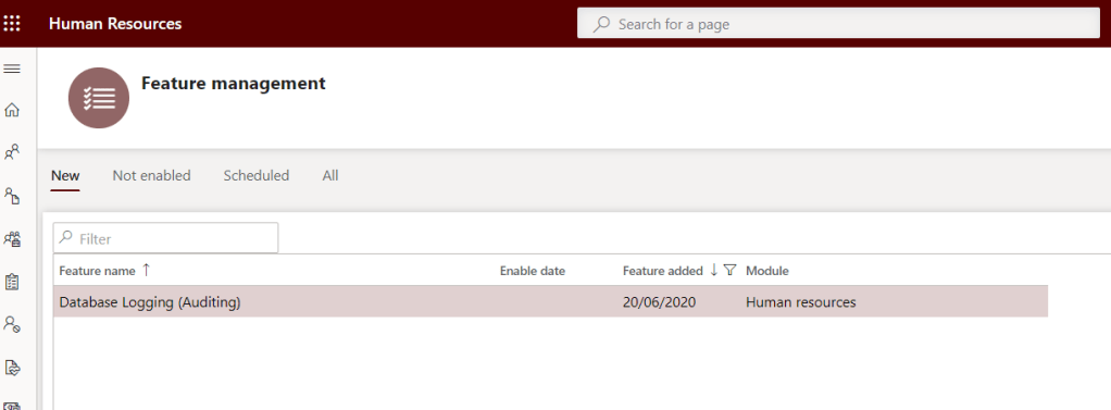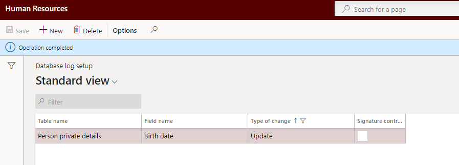 Database logging feature in D365HR