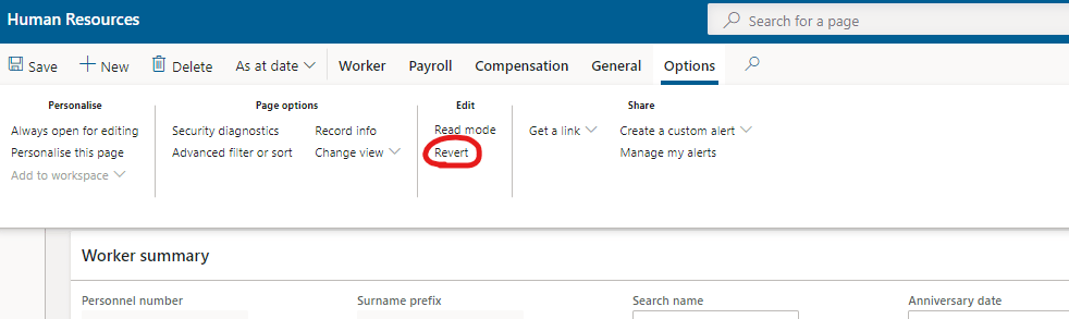 Lets say, I have to create two worker records. Created first worker’s record correctly but when entering personal information such as gender, date of birth, ethnic origin etc, I realised that I have entered incorrect data. System will given an option revert all those fields (with respect to the corresponding fasttab details) and I dont need to delete the data from every field in that fast tab. Ofcourse this works with some rules and restrictions 😉