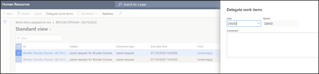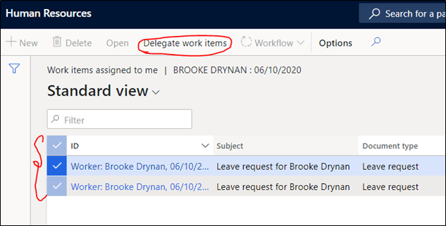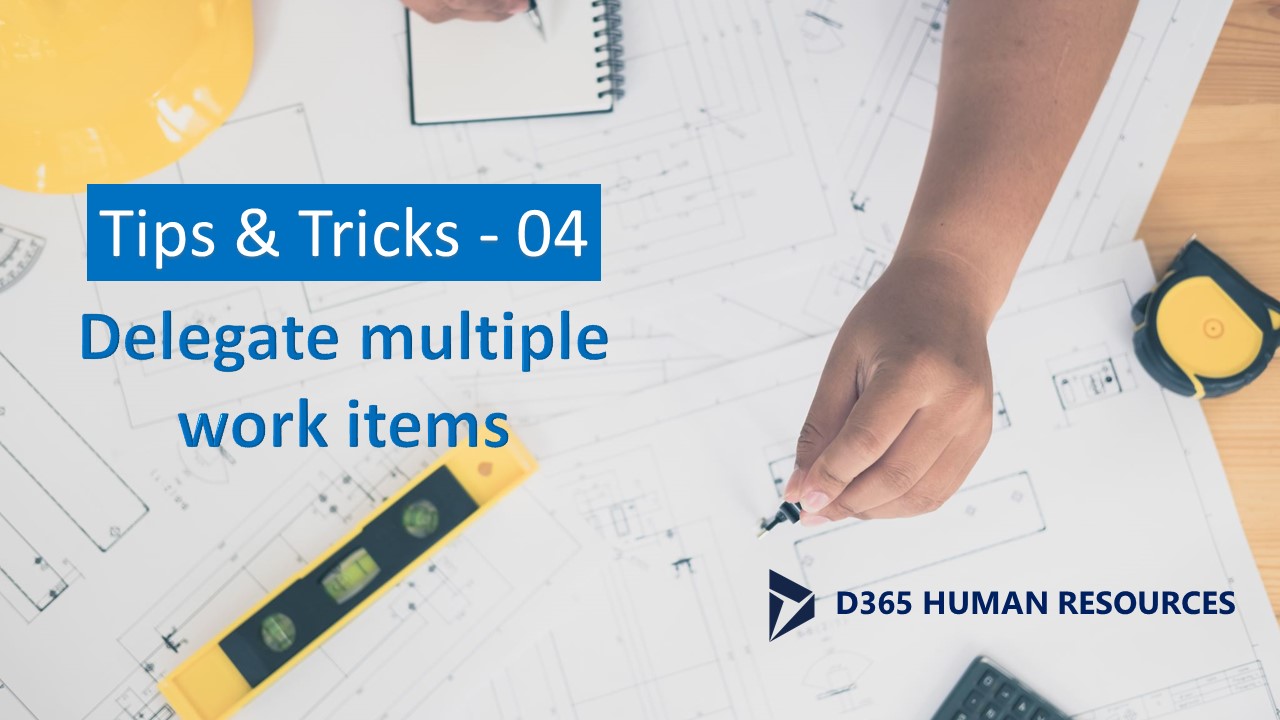 Instead of reassigning/delegating each work item assigned to you, you can now delegate multiple work items at a time. A new feature released by Microsoft to both D365 Human Resources and D365 Finance & Operations that will help you with this.
