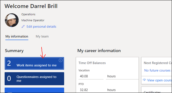 The above can be used for any approvals pending (leaves, expenses, PR or PO etc.) in your work items assigned to me tile.